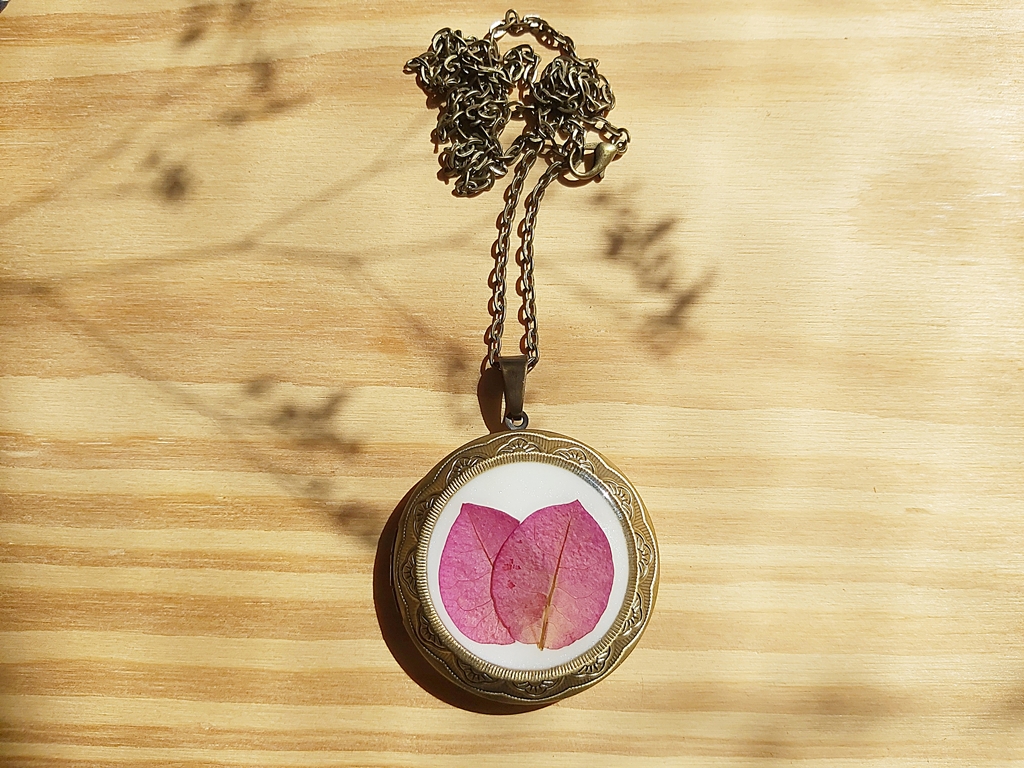 Evite seu contato com superfícies abrasivas, água e cosméticos. colar, colar de flor, colar com flor, colar de resina, colar de flor na resina, flor na resina, flor em resina